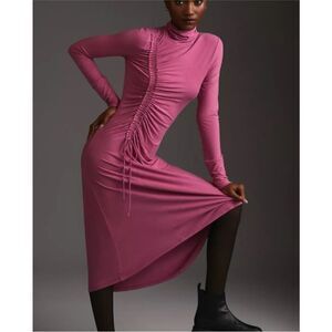 Anthropologie Daily Practice Pink Ruched Midi Dress | Size L