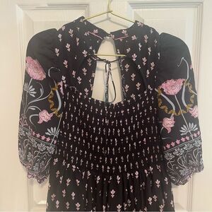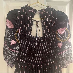 Elegant dress with floral design. Features puff sleeves and keyhole back. Perfect for stylish occasions. So Pretty & Excellent Condition!