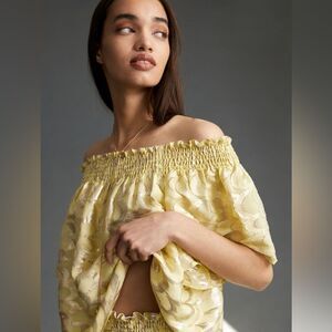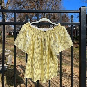 Stunning Anthropologie Delfi collective silk metallic blouse. Never been worn, with tags attached. 100% silk. Could be worn off the shoulders or not. Elastic neckline. Lined. Made in USA.