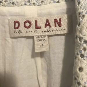 Gently worn Anthropologie Dolan Left Coast Rossi Eyelet Moto Jacket Blue White Size XS. Clean and no signs of damage. When zipped pit to pit measures 16 inches. 100% cotton.