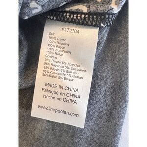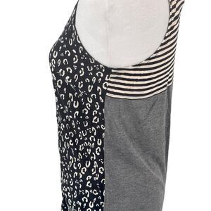 Made from a soft, flowy blend of 100% rayon (leopard print) and 95% rayon/5% spandex (gray/striped sections), it offers a comfortable and slightly stretchy fit.