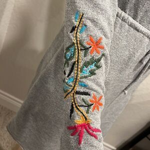 Anthropologie Dolan T-shirt grey fleece dress, w/embroidered floral appliqués