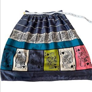 Anthropologie Edme and Estylle Pinochle Pleated Skirt; size 0P. Fully lined with tiny ric rac lace at lining hem. Side zip, Polyester; acetate lining, Machine wash. Lightweight, perfect for summer skirt. The skirt is in great gently used condition, no stains, holes or runs.