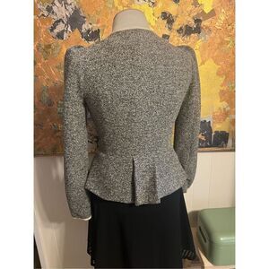 Anthropologie Elevenses Black & White Tweedy Ruffle Front peplum Jacket Size 8