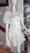 Chic mini dress with puff sleeves. Features cut-out detail. Elegant gold floral accents.