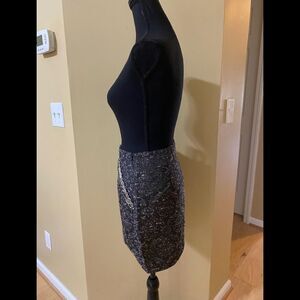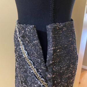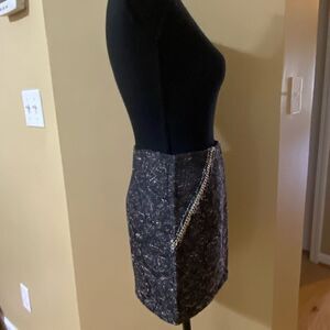 Anthropologie English Rose Black and gold tweed looking asymmetrical mini skirt