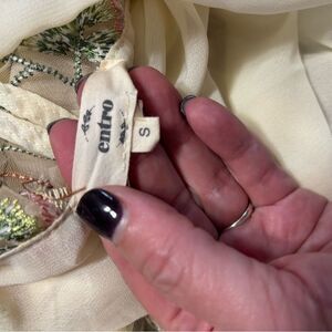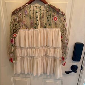 Anthropologie Entro Cream Blouse with Sheer Floral Sleeves