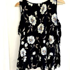 Beautiful cold-shoulder floral top from Anthropologie brand Entro, in excellent pre-owned condition. Size small. Please see photos for more detail and measurement information.