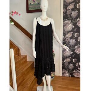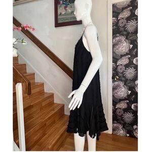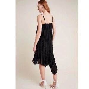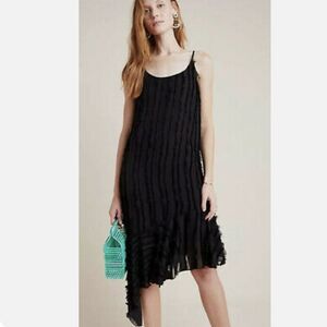 Anthropologie Eri +Ali Black Fringed Asymmetrical Slip Midi Dress