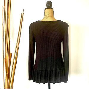 Anthropologie Eri + Ali Black Waffle Knit Thermal Top Long Sleeve Ruffle Hem S