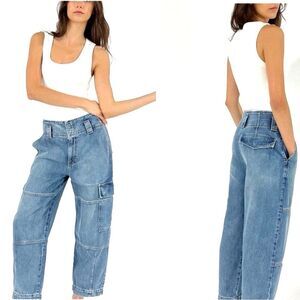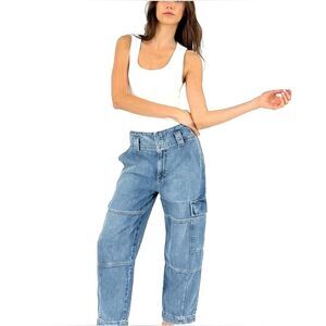 Etica Juni relaxed barrel cargo in North Shore carried by Anthropologie jeans. The high waisted Juni cargo pants makes a sharp tapered barrel style leg these jeans are perfect with your favorite tee and sneakers or pair it with a heel and spice it up! The cargos and barrel style are so on trend.
