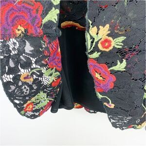 Anthropologie Eva Franco Poppy Black Floral Embroidered Mini Dress 4P Drop Waist