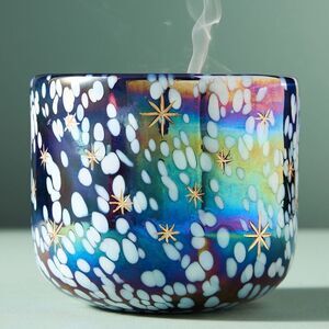Anthropologie Festive Cedar & Cypress Gilded Large Glass Candle-Navy