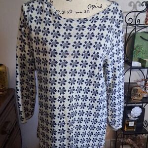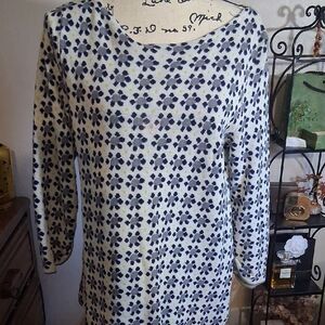 Anthropologie Field Flower Women's Blue and White Patterned Blouse Size Large