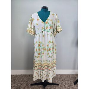 Hello, sunshine! This New With Tags Anthropologie Figueroa floral midi dress in size XL is a boho beauty with breezy charm. Featuring a flattering empire waist, flowy puff sleeves, and dreamy vintage-inspired floral print, it’s made from a luxe 80% rayon, 20% linen woven fabric that drapes like a dream. Perfect for picnics, farmers markets, or that effortless "I just threw this on" look.