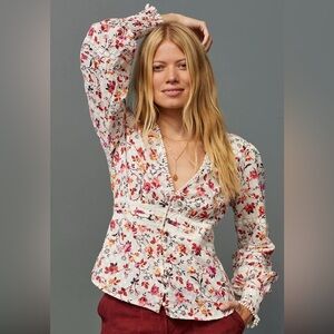 Anthropologie-Floral lace long sleeve blouse-Size 4-EUC
