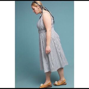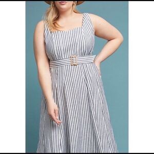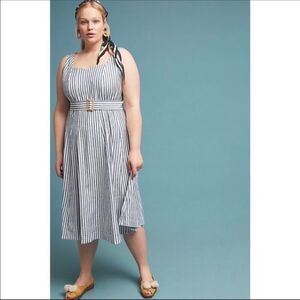 Anthropologie Fowler Linen Blend Dress Striped Maeve Navy size 16W