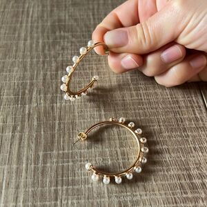 Anthropologie Outer Edge Gold Pearl Hoop Earrings