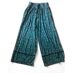 Anthropologie Green Leopard Print Wide Leg Pants Small Drawstring Waist Pockets