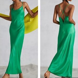 Anthropologie Green Maxi Cowl Neck Slip Dress NWT 16P