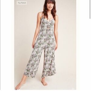 Anthropologie Green Jessie Floral Wide Leg Jumpsuit sz S