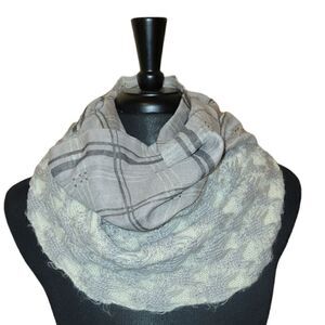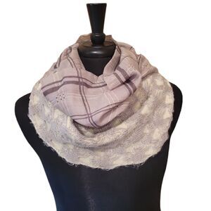 Anthropologie Grey Gray Taupe Neutral Plaid Infinity scarf