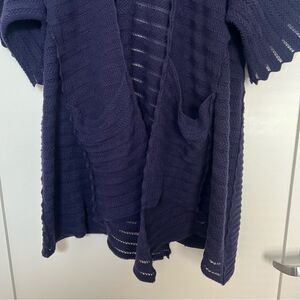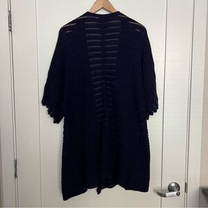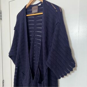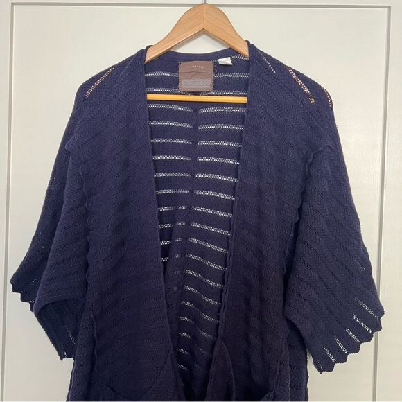 Anthropologie Guinevere Cardigan Sweater M Deep Blue Long Line Knit Open Front