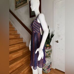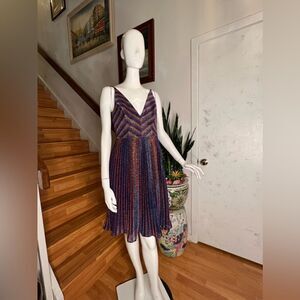 Reflecting a spectrum of stunning hues, this shimmery midi dress was made to mesmerize. Polyester, metallic; polyester lining Pleated