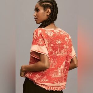 Anthropologie Happy Sheep Printed Fringe Sweater Tee NWT
