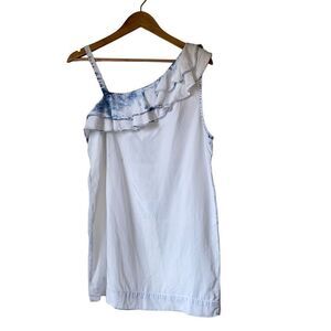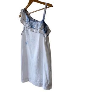 Anthropologie Holding horses bleached chambray mini dress size small. One shoulder Ruffle shift dress. Very soft fabric.