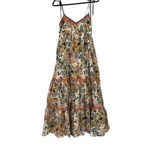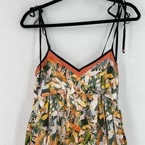 Anthropologie In Loom Multicolor Tiered Sleeveless V-Neck Tie Shoulder Maxi Dres