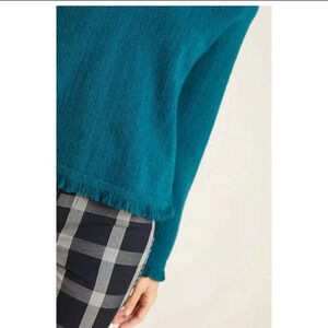 Anthropologie | Joy Fringed V Neck Sweater Medium New Dark Turquoise Teal New