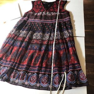 KAS New York Sleeveless Dress. Elaborately embroidered bodice, flowing light weight body with black lining. Size small. Measures chest 36”, length 36”. EUC.