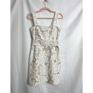 Anthropologie Karta lace dress || size small, fits tts || sits right above the knee || excellent condition with minimal wear || white belt with decorative floral detailing ||