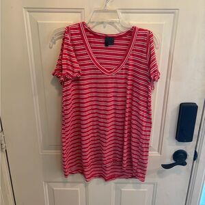 Anthropologie Left of Center Red and White Tie Front Short Sleeve T-Shirt