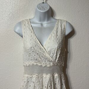 Cream sleeveless eyelet maxi dress from Leifnotes for Anthropologie. Surplice neckline. Side zip. Size 6.