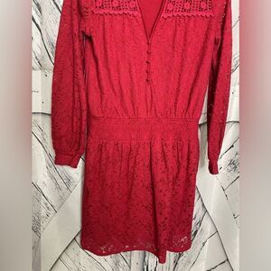 Anthropologie Leifsdottir Red Lace Drop Waist Dress M