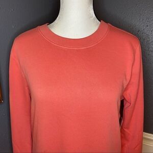 This sweatshirt features puffed sleeves for an au courant twist - the color is light pink close to coral.