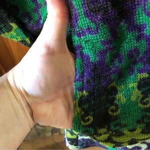 Features: Collared neck, button front, beautiful soft boho printed knit fabric, 2 front pockets,