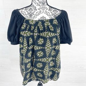 Anthropologie Maeve Catania Puff Sleeve Geometric Shift Top