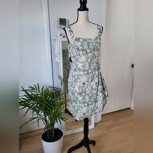 Embrace elegance with this stunning floral dress. The green and white pattern adds a fresh touch to your wardrobe. Perfect for any occasion.