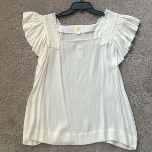 New! Anthropologie Maeve Elegant ivory top with ruffled sleeves, perfect for any occasion.