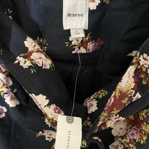 Anthropologie Maeve Linen Blend Floral Puff Sleeve Mini Dress NWT Size Large