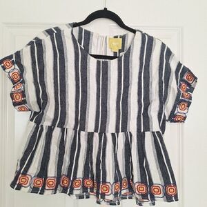 Anthropologie Maeve Linen Striped Tie Back Top S