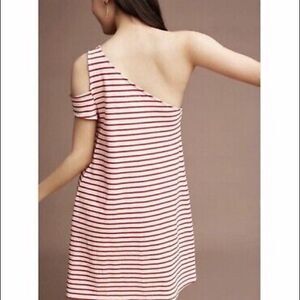 Anthropologie Maeve Marketa One-Shoulder Dress Red White Stripes Size Medium