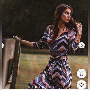 Anthropologie Maeve Novela Chevron 3/4 Sleeve Maxi Dress