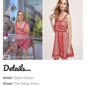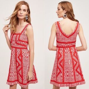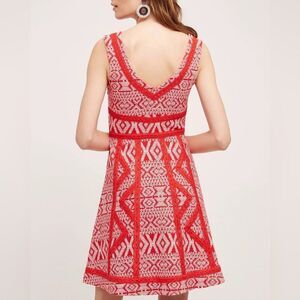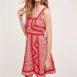 ✨ Anthropologie Maeve Red & White Tribal Print Crochet Lace Fit & Flare Dress ✨