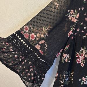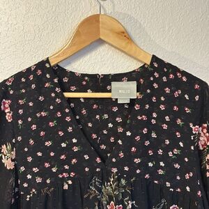 Black floral bell sleeve blouse from Maeve for Anthropologie. Size medium.