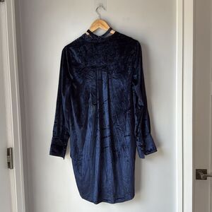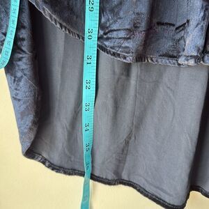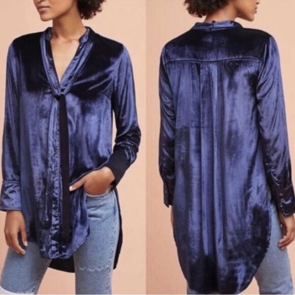 Anthropologie Maeve Tie Neck Crushed Velvet Navy Blue Blouse High Low