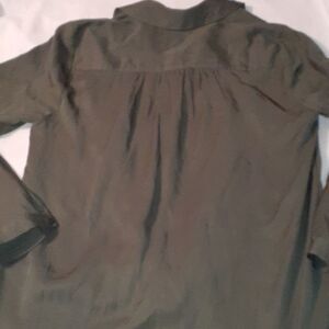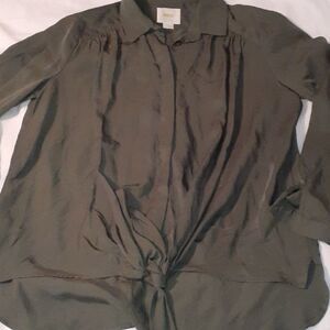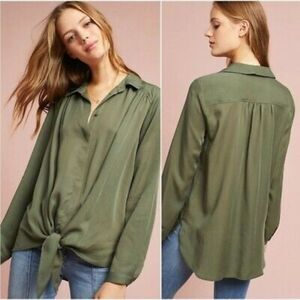 Maeve Anthropologie Tuesday Blouse Olive Green Tie Front Button Down